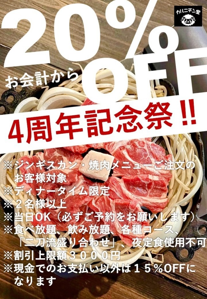 ディナータイム限定 要予約20%値引きキャンペーン